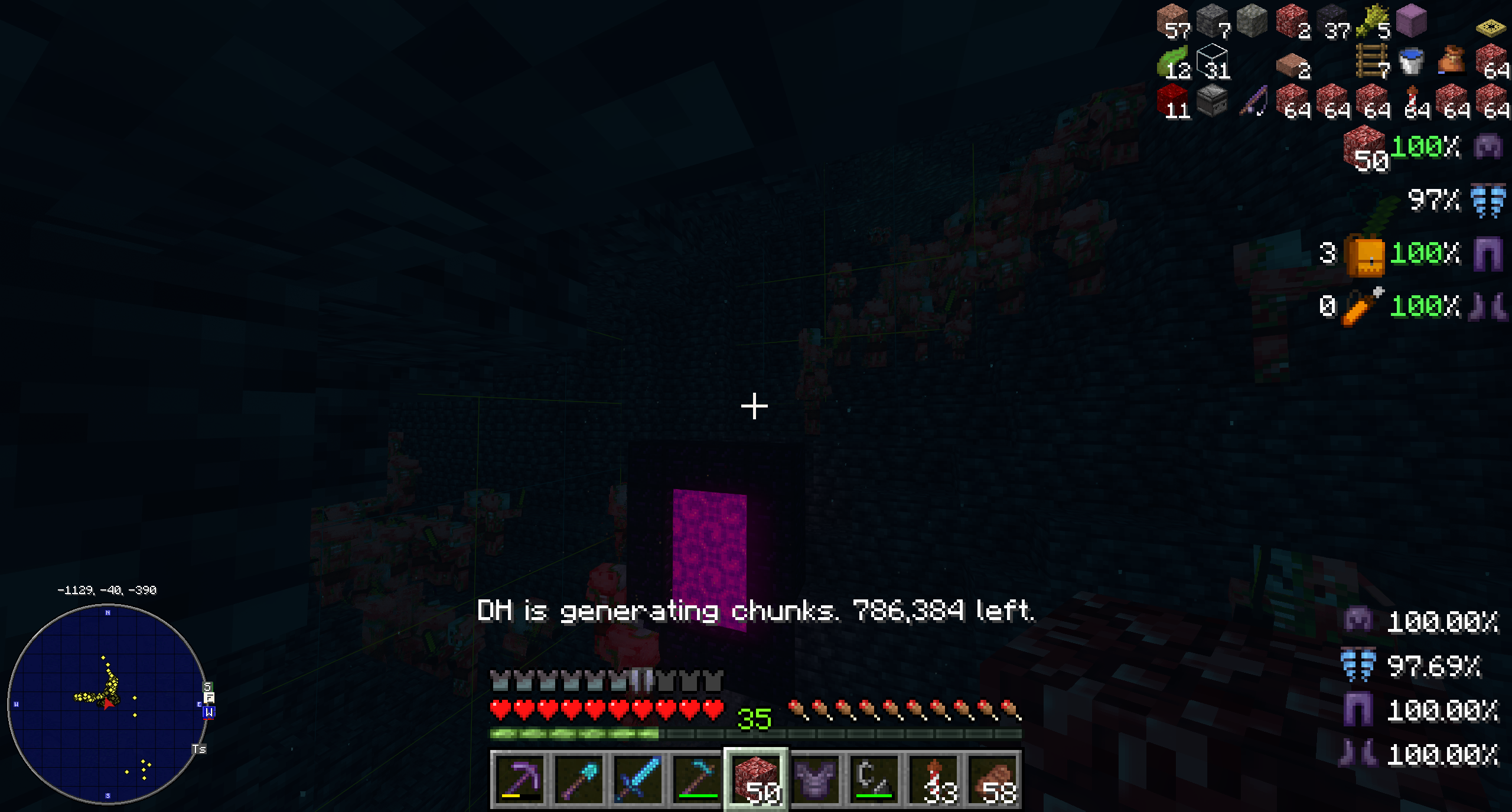 When I was building the gold farm, the double whammy of emerging in an unexplored region (which made distant horizon start generating a ton of chunks) and also the unholy amount of piglins just nuked my fps down to like 15